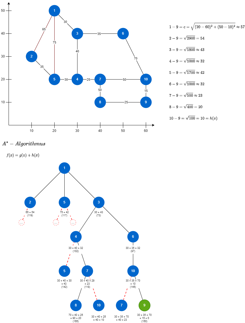 - Dijkstra: Nächster Knoten der am nächsten zum Startpunkt ist (über einen gerichteten Weg)