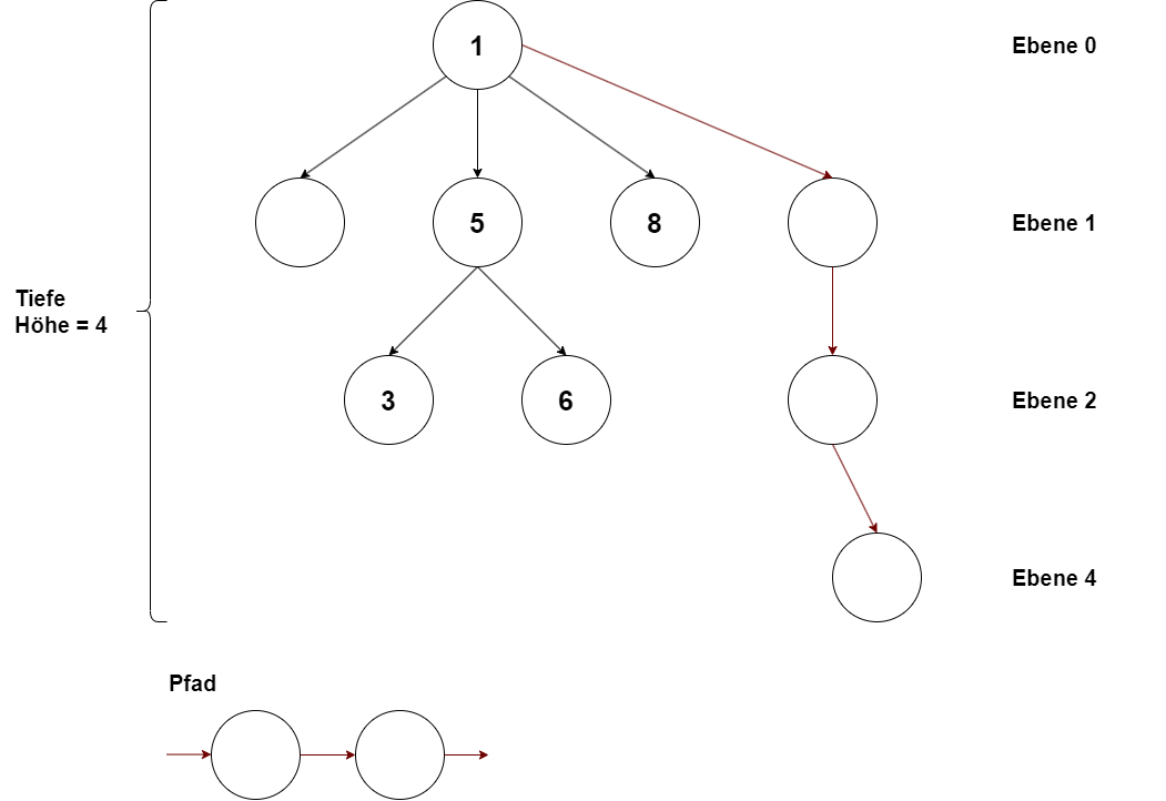 Eine Verknüpfung solcher Elemente ergibt einen binären Baum, der durch einen Verweis auf den Wurzelknoten zugänglich wird