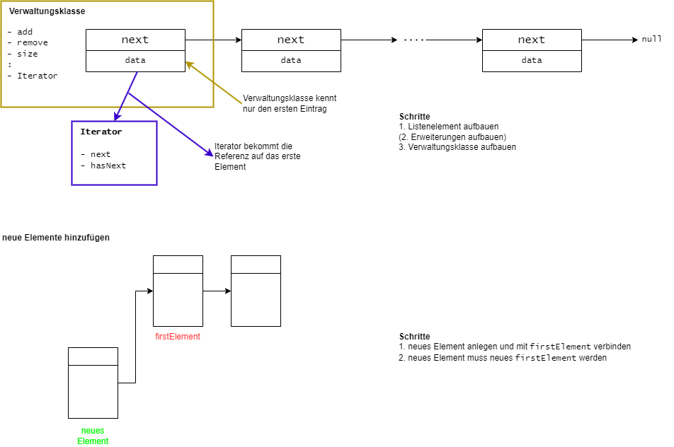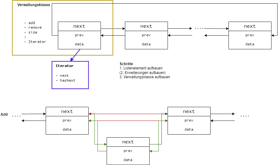 - Nachfolgerknoten und/oder Vorgängerknoten ergänzt, die die Kanten darstellen