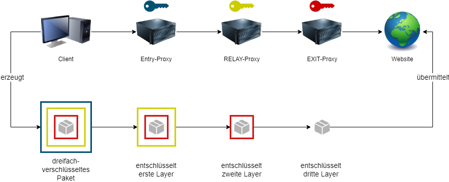 - 6000-8000 TOR-Nodes (Server) -> Proxys