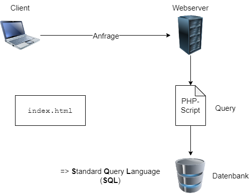 - -> Datenbank: MySQL (oder SQLite, usw.)